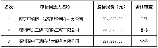 中 标 人:南京市消防工程有限公司深圳分公司。