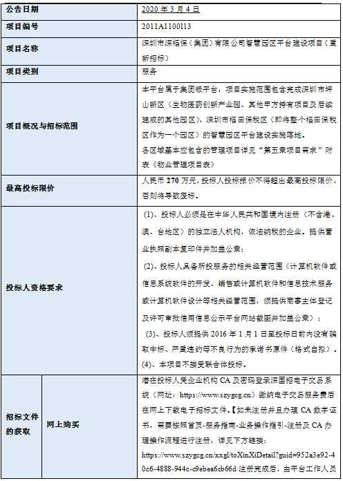 深圳市必一运动(集团)有限公司智慧园区平台建设项目(重新招标)招标公告