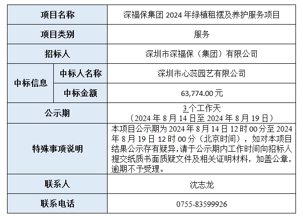 必一运动集团2024年绿植租摆及养护服务项目中标结果公示