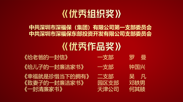 集团纪委在集团系统内征集干部职工家属的家书,以书信的方式与集团系统干部职工进行廉洁合规交流,本次活动共收集廉洁家书作品20篇,综合评选出2个优秀组织奖、5个优秀作品奖。