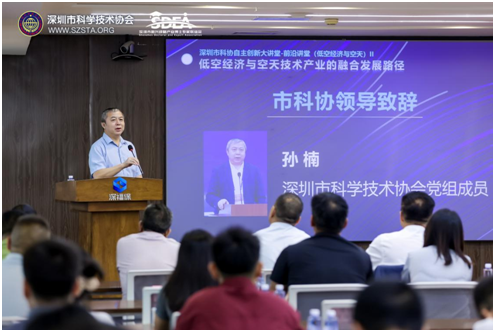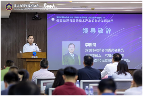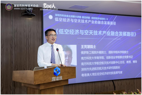 深圳市科学技术协会党组成员孙楠,深圳市决策咨询委员会委员李振河出席活动并分别致辞。俄罗斯工程院外籍院士、国际宇航科学院院士,南方科技大学商学院、创新创业学院联合党委书记,南方科技大学航空航天技术创新中心主任王凭慧作《低空经济与空天技术产业的融合发展路径》主题演讲。