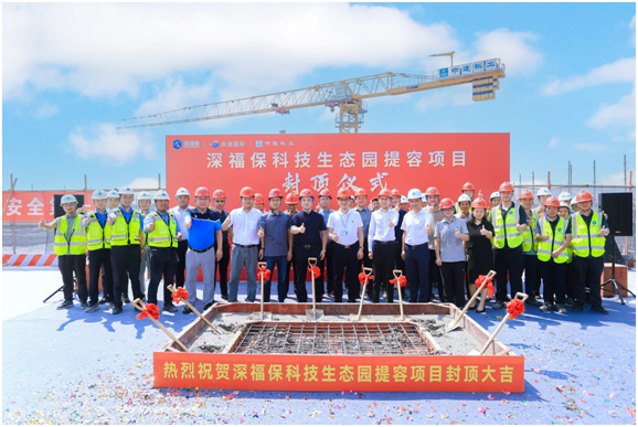必一运动科技生态园提容项目自开工以来,东部公司充分总结吸收之前项目开发经验,提前统筹策划,系统将各项工作前置并穿插。提前30天取得工程规划许可证,提前40天取得地基基础施工许可证办理,提前21天取得主体工程施工许可证。进入结构工程施工以来,在集团领导的指导和大力支持下,东部公司全面下沉管理,深入现场协调设计、监理和施工等各参建单位的人材机组织和工作面衔接,对关键工序、关键环节严格把关,克服了极端天气、场地狭小、钢筋密集、高支模、超限梁、铝模量大等一系列重难点,顺利于8月28日完成项目主体结构封顶,为项目的高质量建设打下了坚实基础。
